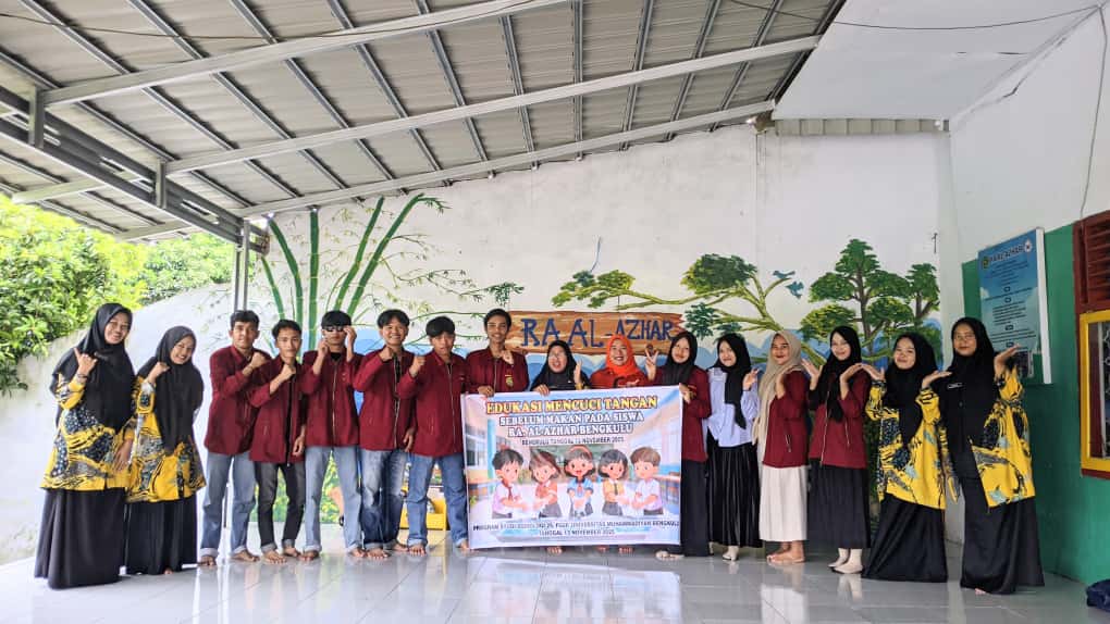 MAHASISWA SOSIOLOGI UNIVERSITAS MUHAMMADIYAH BENGKULU LAKUKAN EDUKASI CUCI TANGAN DI RA AL-AZHAR BENGKULU
